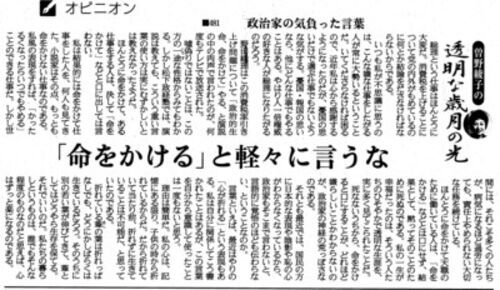 今朝の産経「オピニオン」欄「透明な歳月の光」に曽野綾子女史は「『先輩の死者』から学ぶべきこと」と題して、3・11のことを書いた。その中で彼女はアウレリウスの次の様な言葉を引用している。 「この世の生において、お前の肉体は力つきぬのに、その中で…